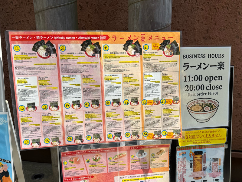 途中通りかかったNARUTOエリア入り口のメニュー表がものすごくインバウンド向けになっていてびっくりしました…!