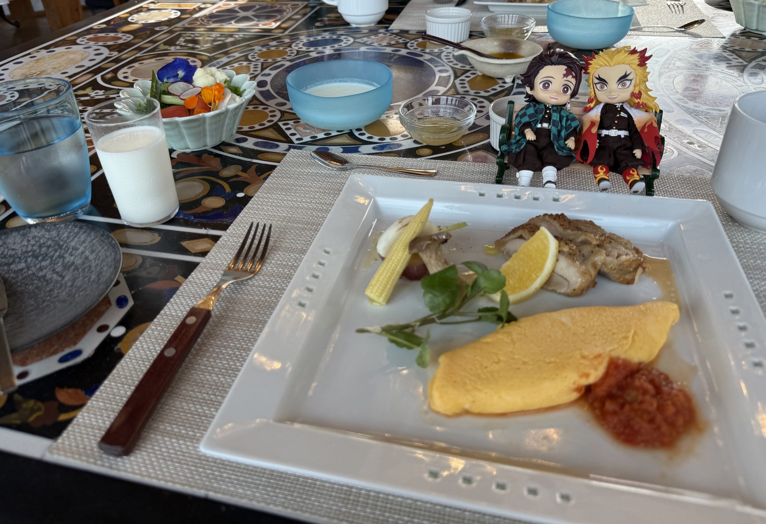 うたちゃんは妓夫太郎たちのおそうめんを注文していました。美味しそう!こちらのオムライスも大変美味しかったです…!