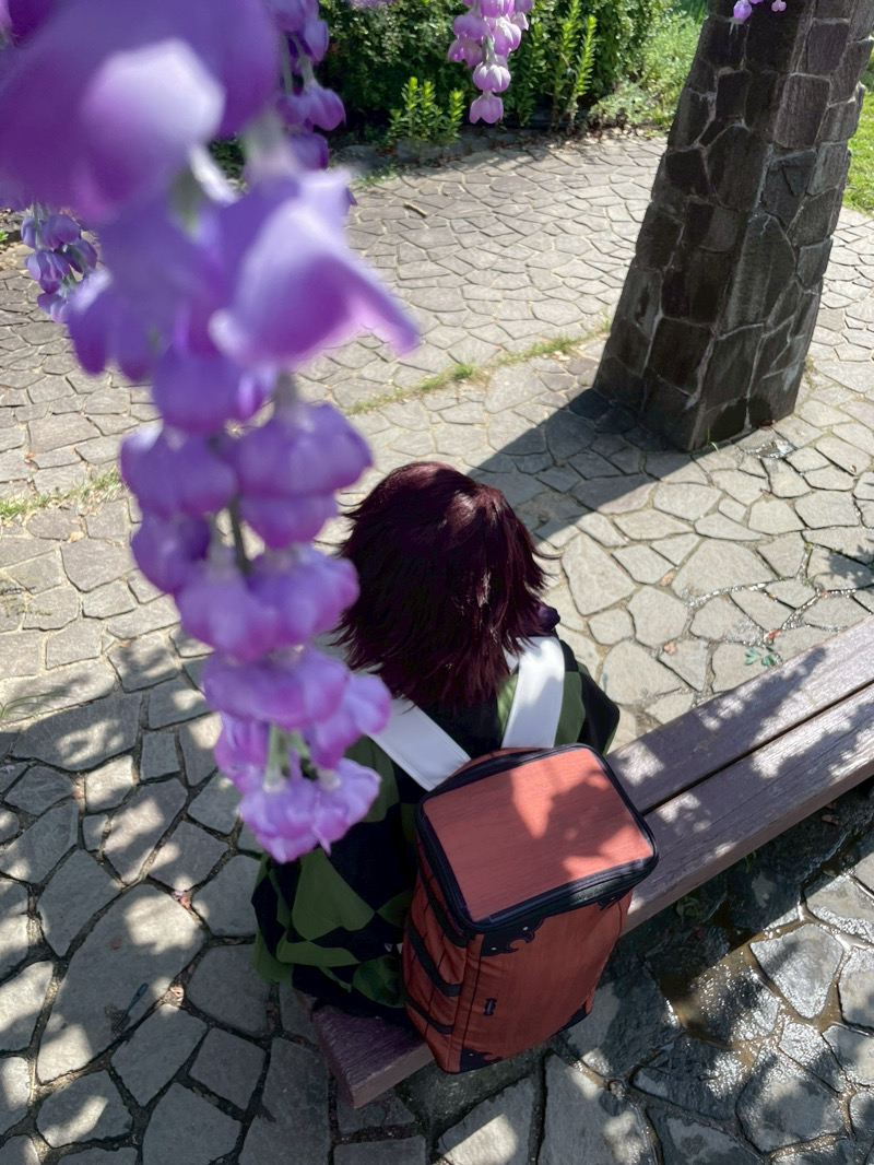 背負っているカバンはサントリーの懸賞で当てたものです。ニジモリのものではなくてごめん(他のカバンを購入したので許して…!)