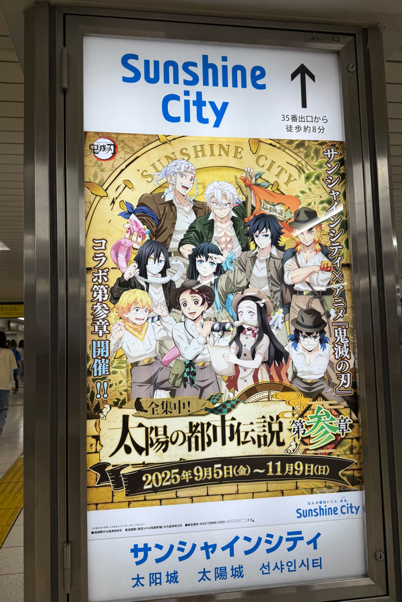 サンシャインシティの広告のほか、この時は鬼滅映画広告もあったためもはや駅がジャックされている