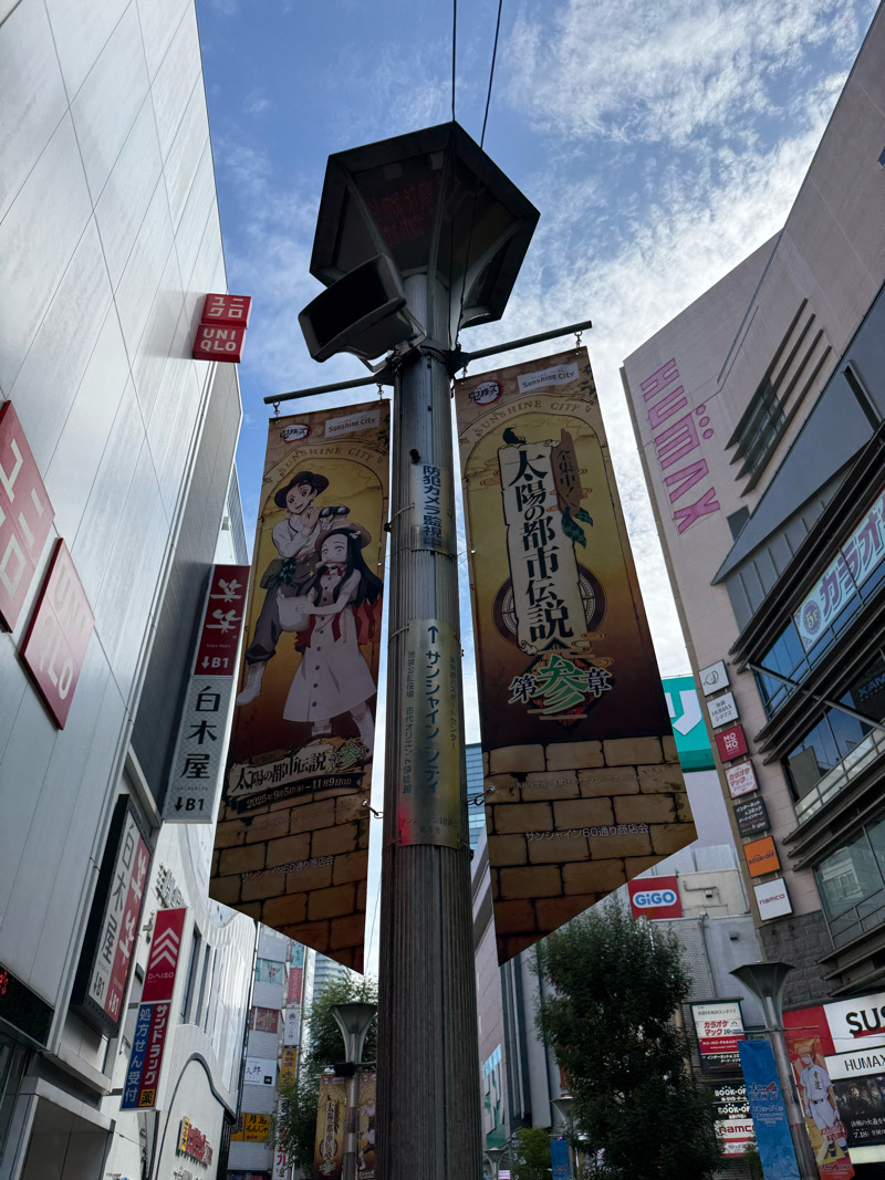 サンシャイン通り?でも鬼滅コラボの装飾が。