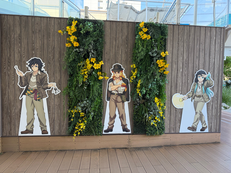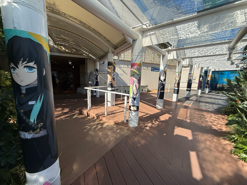 朝のあまり人がいない時間帯に。こうして広い範囲で鬼滅を飾ってくれるのはとても嬉しい