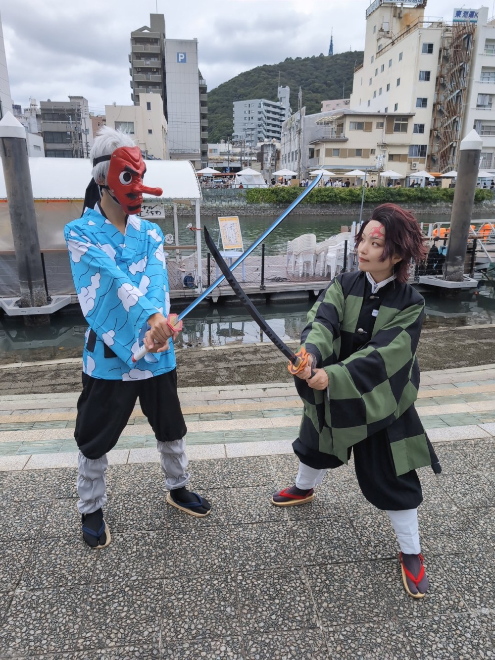 歩いている義勇さんと鱗滝さんをジロジロみていたらお声かけてくださりました(いい人…!)素敵な兄弟子と師匠に会えて嬉しいです!