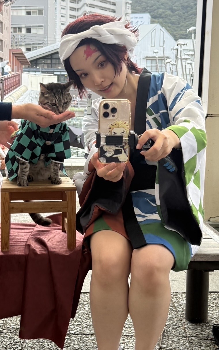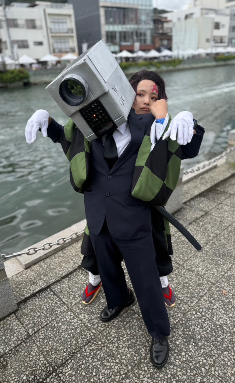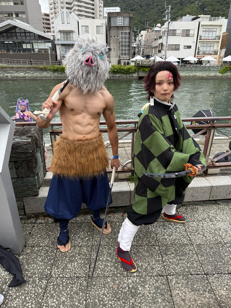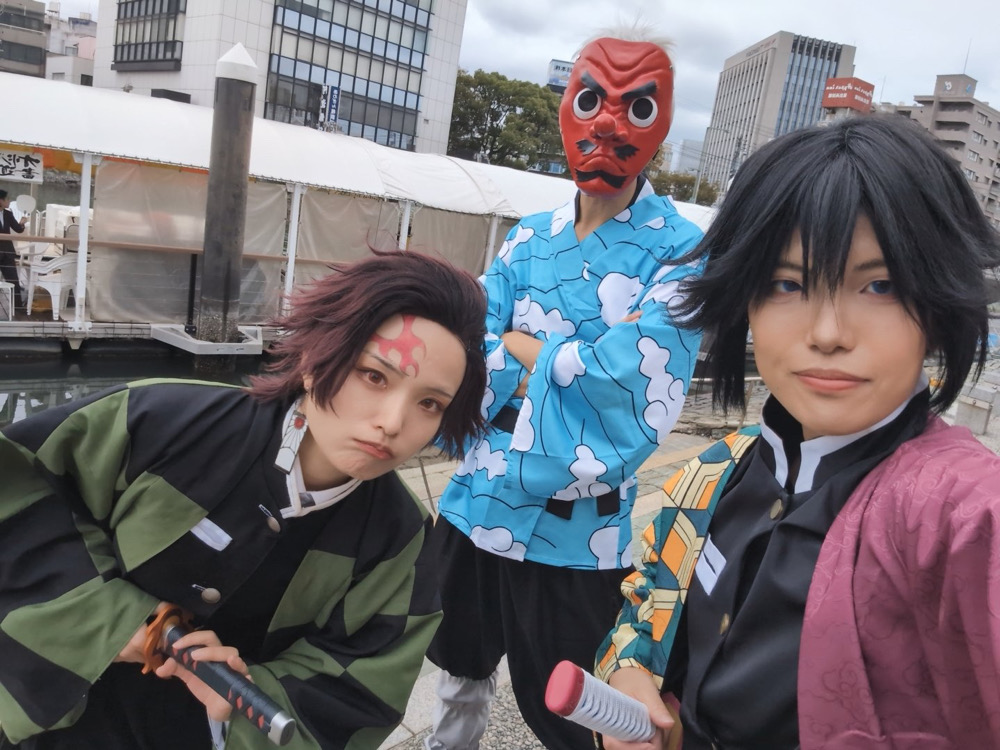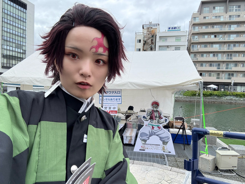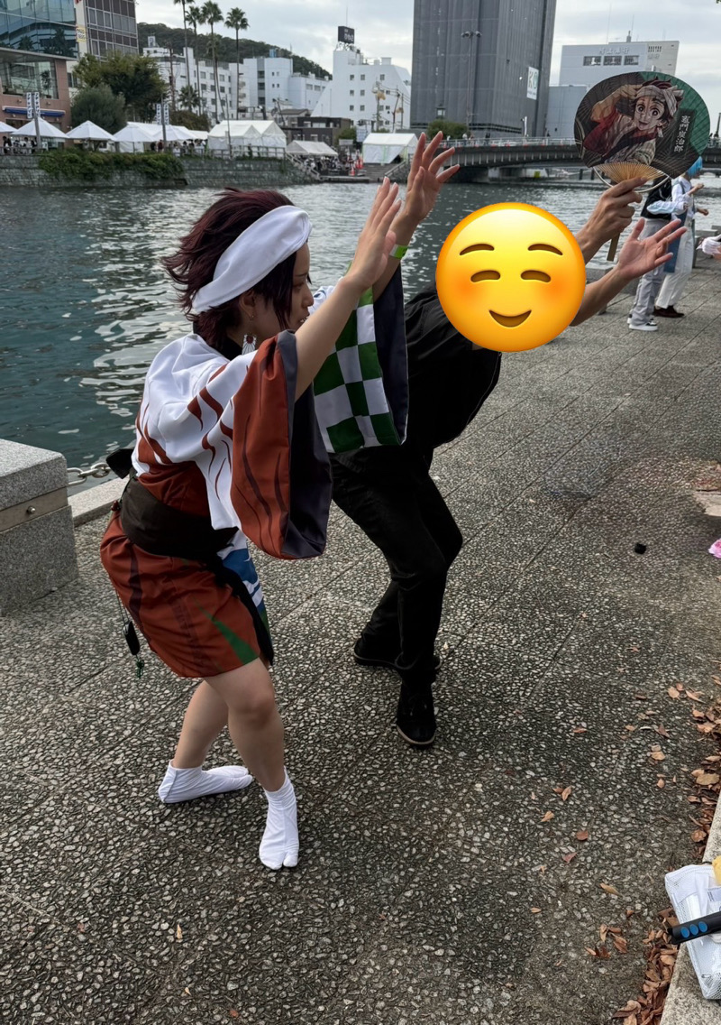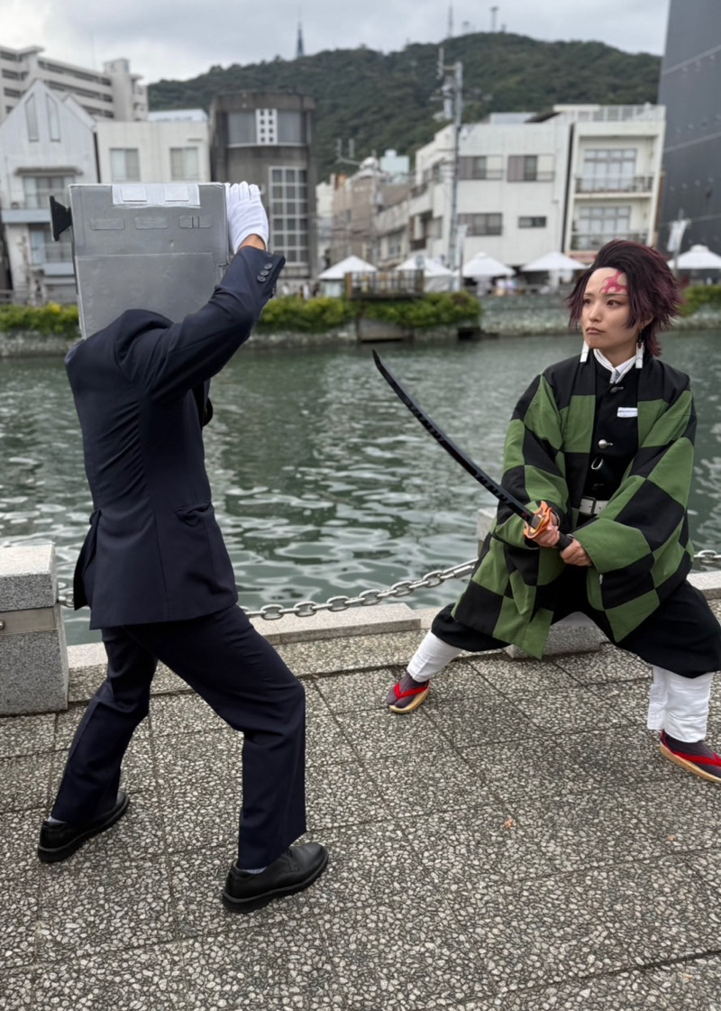 前回のマチアソビの時に炭治郎コスをされていたゆういちさんと再び会うことができました!(X @yuu1__cos)お顔が小さくて可愛い…禰豆子もすごく似合っていて美人さんでした😭この時は一瞬だけしかお会いできませんでしたが、翌日阿波おどり会館までご一緒することができました!その時は義勇さん(素晴らしかった…とてもかっこよかった)だったのですが、カフェの時間が迫っていたこともあり一緒に撮影できず😭 またどこかでお会いしましょう!!