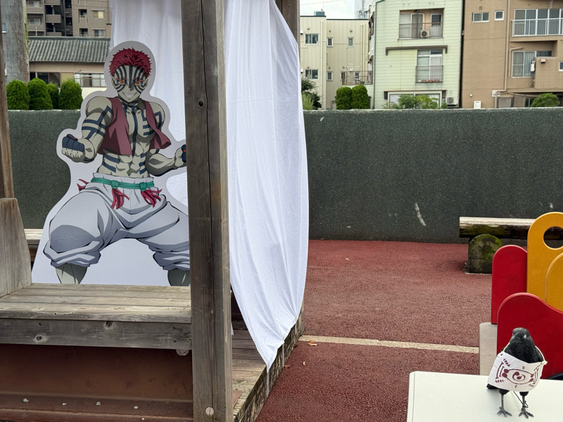 無限城スタンプラリーに出現する鬼はこの3人かな?みんな屋根がある場所にいたので、若干鬼であることを配慮されている感じがある