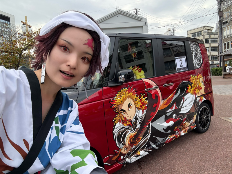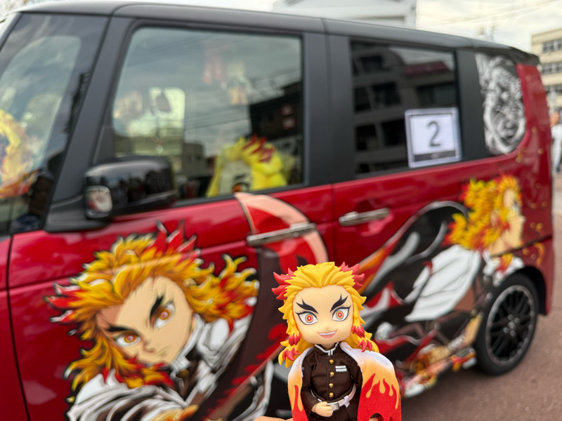 猗窩座が来ていました。痛車グランプリが行われている会場はマチアソビ会場の中でも端っこに位置していたので、なんか遠く感じる…(実際はさほど距離はないのですが、人も多いので移動に時間がかかる)