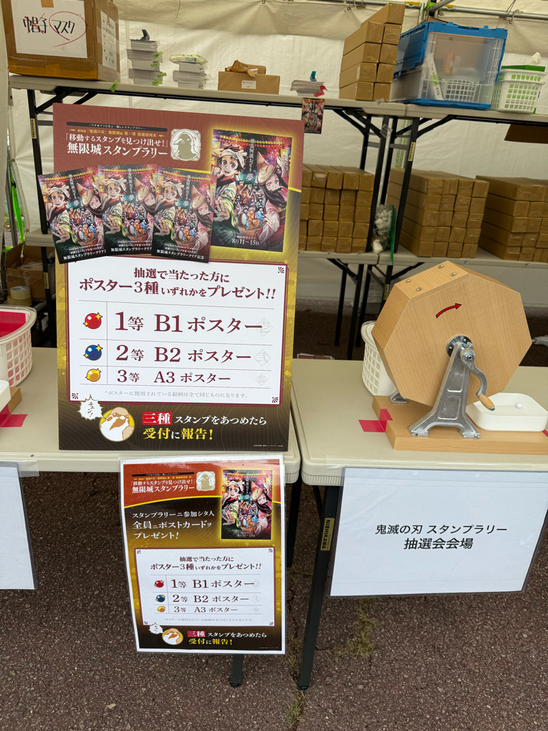 ufotableのXあるいはYouTubeの情報からスタンプ台が設置されている場所を探し、スタンプを押すというちょっと大変なスタンプラリーでした。スタンプ台の位置は1時間おきに変わるという…そこそこ遠い場所にスタンプがあると言われると移動が億劫になるよね…