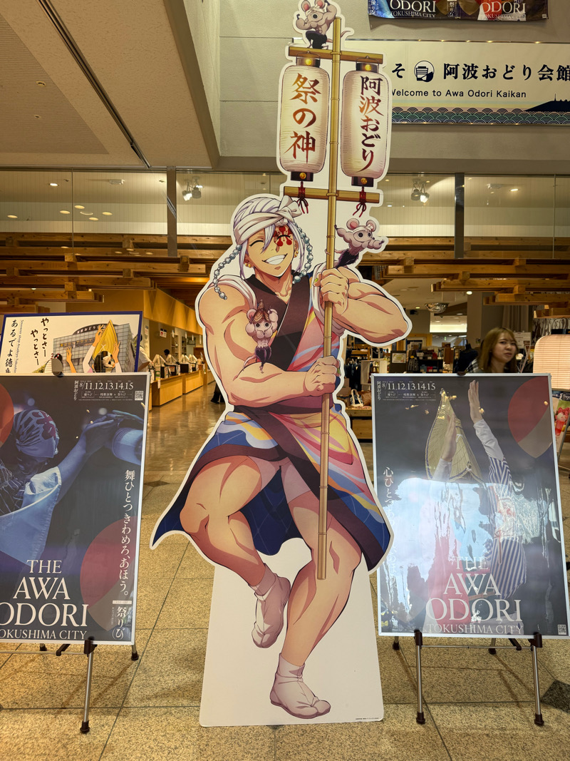 春のマチアソビで仲良くなったゆういちさんと柱のご一行に遭遇し、阿波おどり会館に同行させていただきました。なんで阿波おどり会館に行くのかしらと思ったら、鬼滅連のパネルが展示されているという…!知らなかった…教えてくださり本当にありがとうございます!