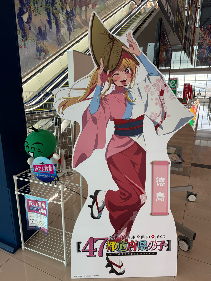 推しの子は47都道府県コラボをしており、徳島空港には徳島コラボのルビーが!可愛い…笹飾りを見に行った仙台でも推しの子コラボを見たなぁ