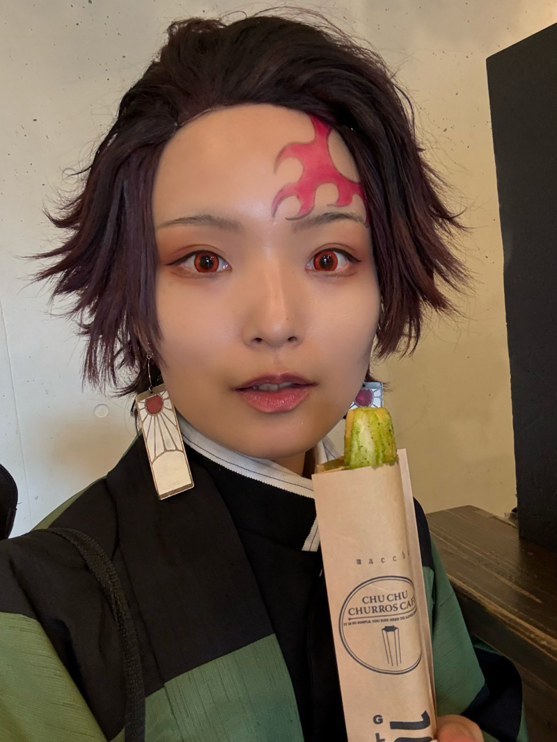 マチ★アソビ2日目に。今まで食べたチュロスの中で1番好きかも…!米粉チュロスで、レギュラーサイズ2本と量が多いなと思いましたが、思ったより軽く食べられてありがたかったです。店員さん達が鬼滅の羽織を着ていたのも素敵でした!