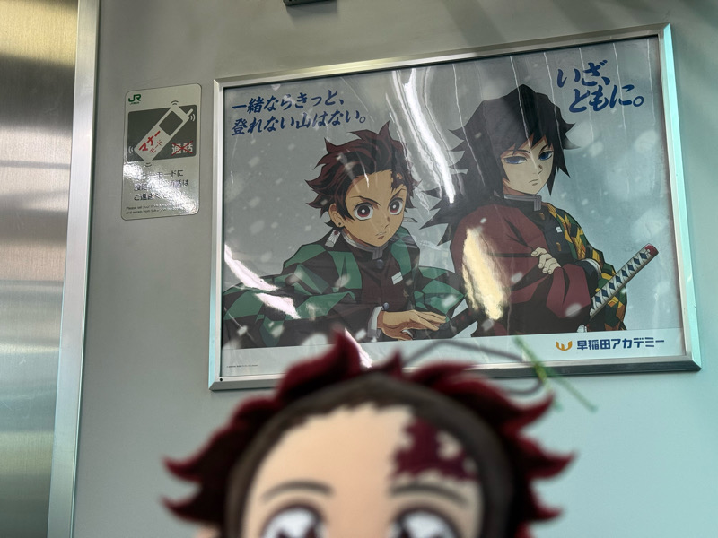 田んぼアートに向かう最中、電車内広告に遭遇できました!日曜の朝早い時間とあって人が少ない…嬉しい…!