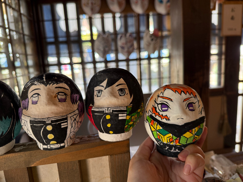 たくさんの鬼滅キャラダルマが飾られているのでぜひ行ってみてください(冒頭の写真のお面も鬼柄が多かった すごい)