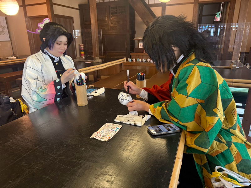 3人合流してダルマの絵付けをするという…鬼滅コスプレでお伺いしてから今回で3回目、いつもお世話になっています…!そしていつも違うコスプレで来てすみません…