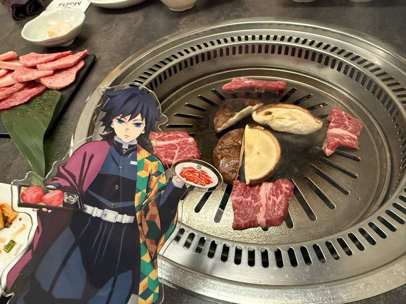 宿近くの焼肉屋で夕飯。焼肉屋さんでこそ使えるアクスタですが、牛角以外だと同業他社になるので普通に喧嘩売っている…